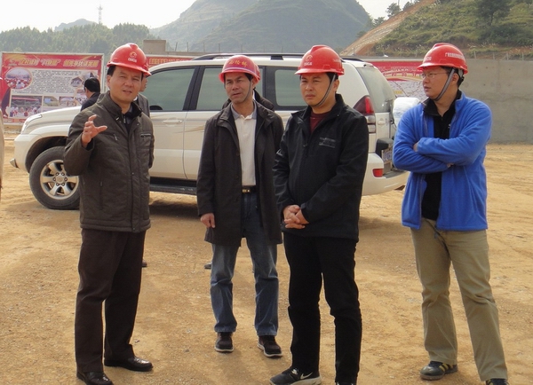 圖2:在檢查施工安全質(zhì)量現(xiàn)場(chǎng),集團(tuán)公司副總經(jīng)理劉明洪(左一)與項(xiàng)目相關(guān)領(lǐng)導(dǎo)親切交流