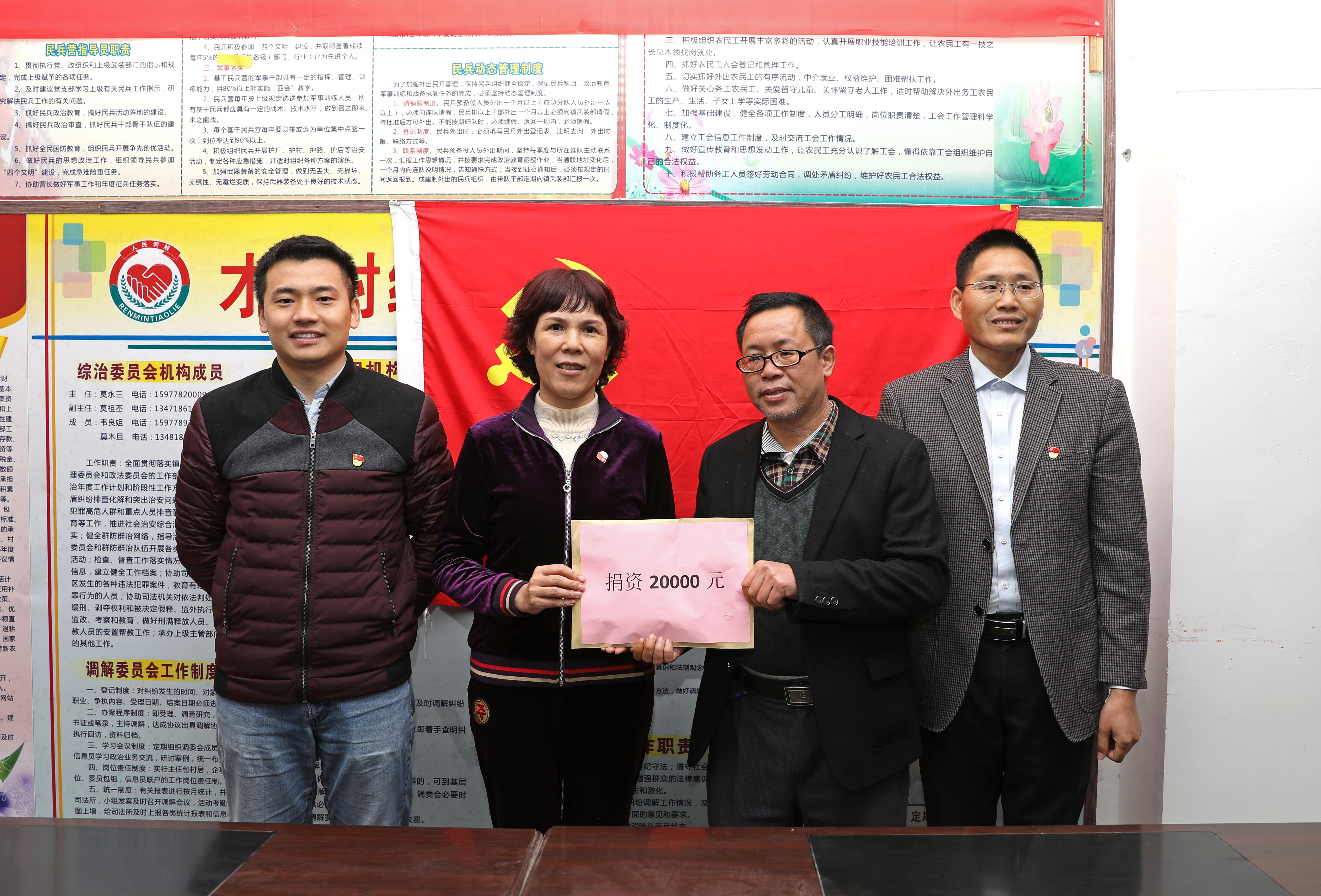 圖為翔路公司黨委向環江縣明倫鎮才帛村捐款2萬元用于修建垃圾焚燒爐